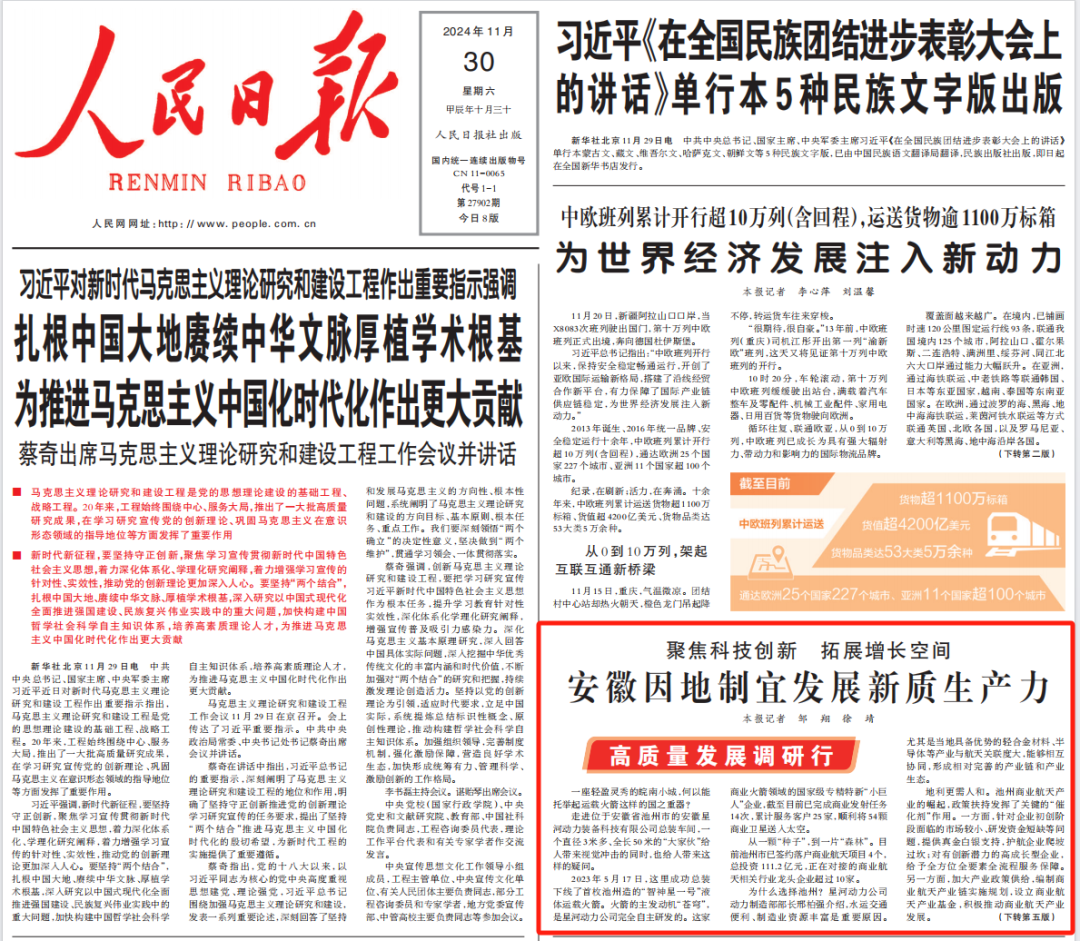 来源:《人民日报》、中研院 发布时间:2024-12-23近日,《人民日报》头版刊发文章《安徽因地制宜发展新质生产力》,文中介绍了彩票论坛 玻璃新材料研究院集团有限公司提升科技前沿领域原始创新能力,突破关键核心技术,构建创新链、工程链、产业链“三链融合”发展模式,研制生产出一系列世界领先的玻璃新材料成果,有效支撑了信息显示、新能源、半导体和高端装备等领域对先进玻璃材料的需求,用科技创新赋能新质生产力发展,让我们一起来看看吧~