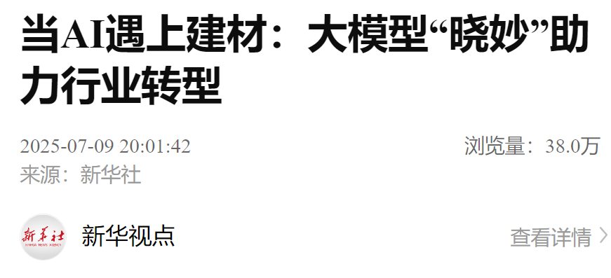 AI赋能 | 新华社、经济日报等报道建材“晓妙”大模型 助力行业智能化转型与创新发展