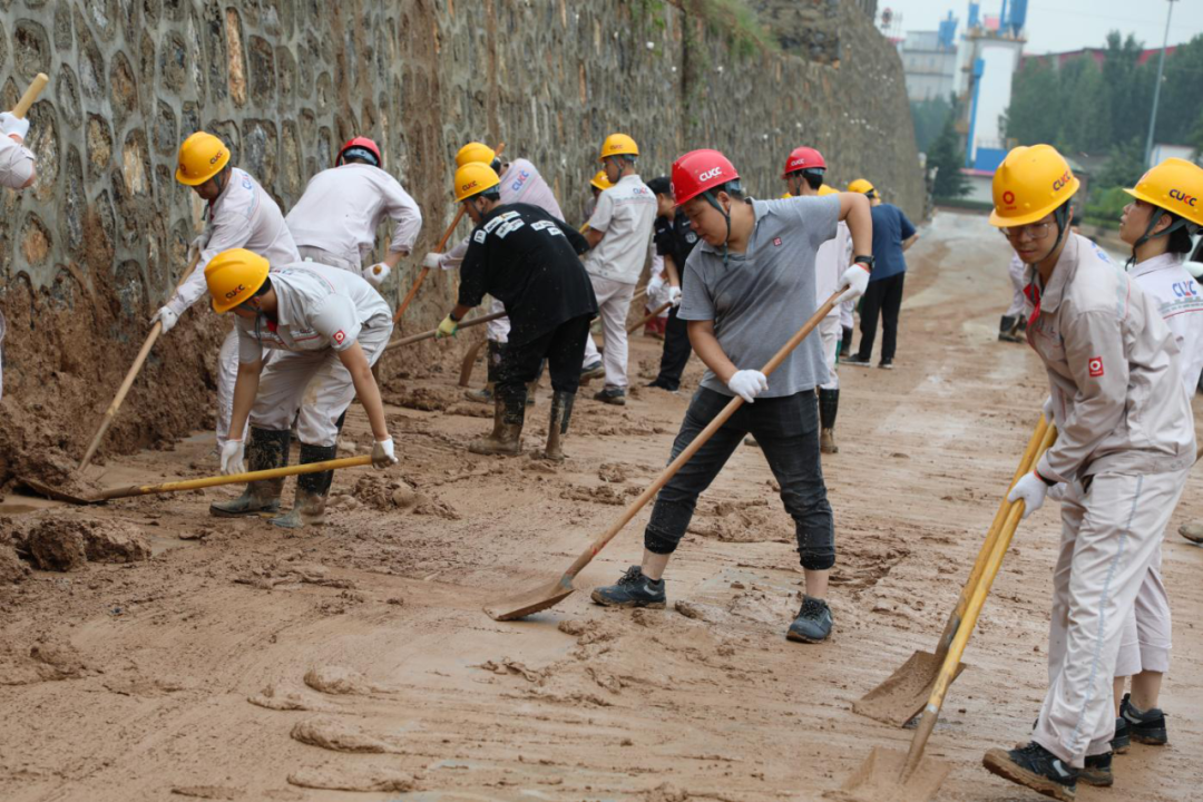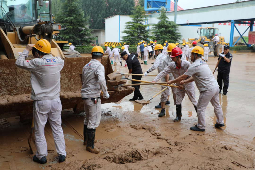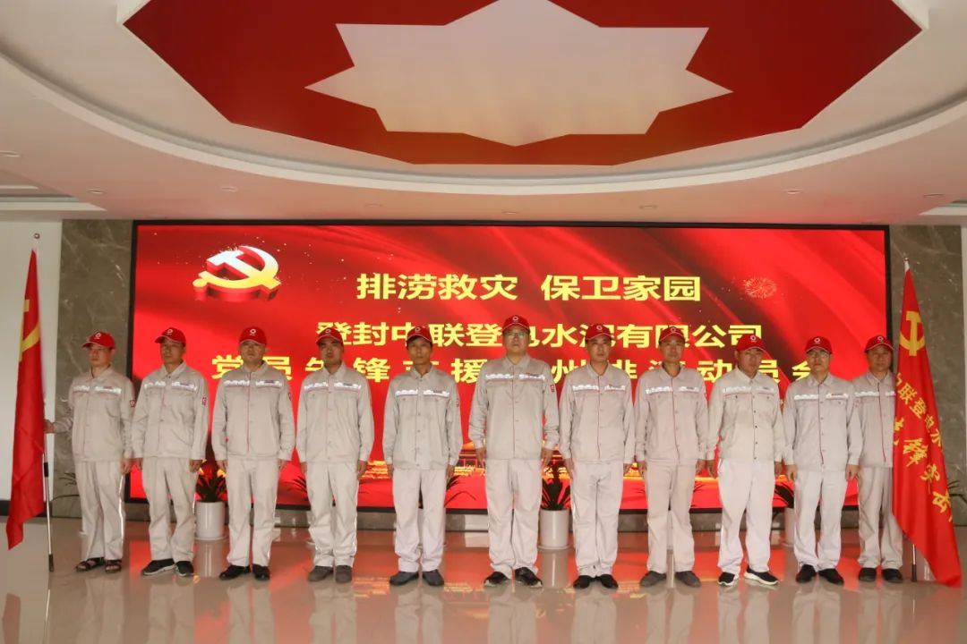 所属登封中联组织成立党员先锋突击队,赶赴郑州参加排涝救灾工作。