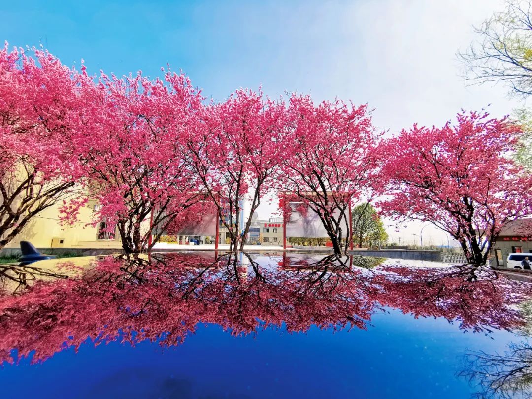 走在厂区的小路上,是否能看见随风飘荡在空中的几片樱花花瓣,它落在肩头,是春天的问候。——青州中联