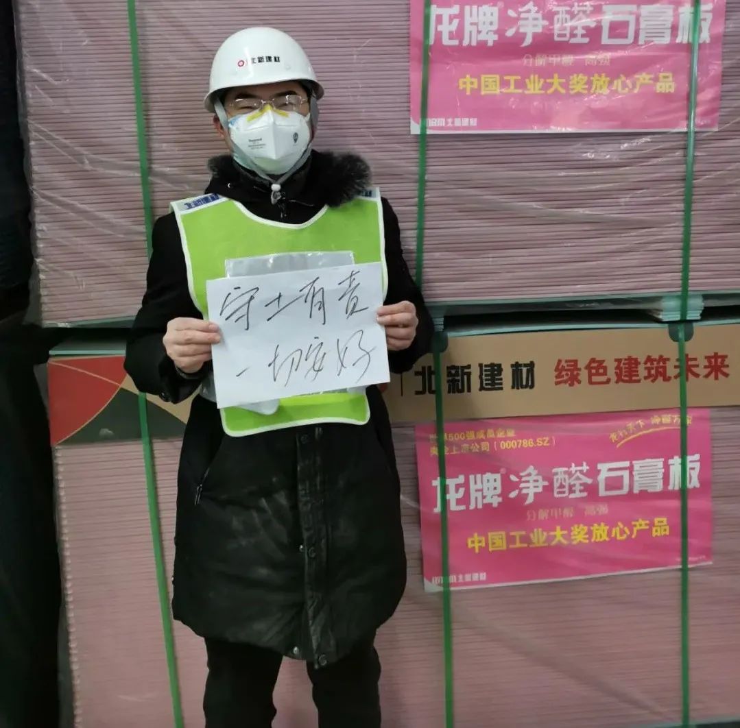 1月27日,大年初三,接到援助武汉大学人民医院隔离病区改造所需石膏板和轻钢龙骨的任务,他安顿好家里的事务第一时间赶到工厂,组织大家分工合作,联系物流,准备货源及相关合格证检测报告等手续。当时最大的困难是物流,项目要求必须当晚到货,但当时的武汉已经禁止机动车、货车行驶,很多货车都不敢出来,面对艰巨形势,程斌他多方联系货车,全阳逻的货车司机、运输队都找遍了!那句:“麻烦了,真的麻烦了,拿出速度来驰援一下建设医院吧,这样才能帮助更多人!”感动了无数人,最终他以诚动人,顺利完成援助任务,从接到电话联系货车司机到把货送到医院,仅用了5个小时,打造了北新人的“新速度”。