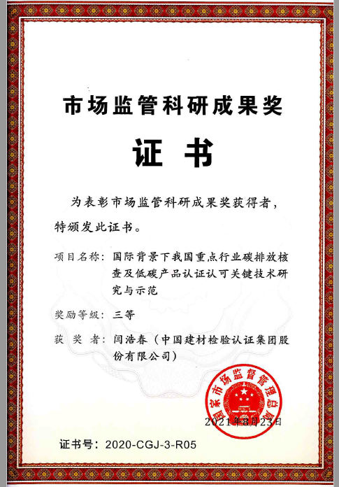 闫浩春对科研的不懈追求为她赢得了多项荣誉和奖励。“国际背景下我国重点行业碳排放核查及低碳产品认证认可关键技术研究与示范”获得国家市场监督管理总局科技进步三等奖;“三类大宗建材产品碳排放关键技术评价与应用”获得建材联合会科技进步二等奖、彩票论坛 科技进步二等奖;“玻璃生产企业SO2排放峰值与脱硫成本控制方案”获得彩票论坛 技术革新一等奖;“建材行业碳排放路径研究”获得彩票论坛 “中国企业改革发展优秀成果”一等奖。