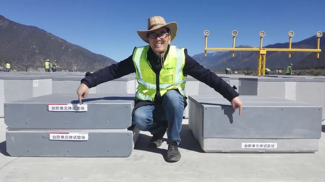 王振地在西藏林芝米林机场EMAS(飞机跑道拦阻系统)铺装现场。