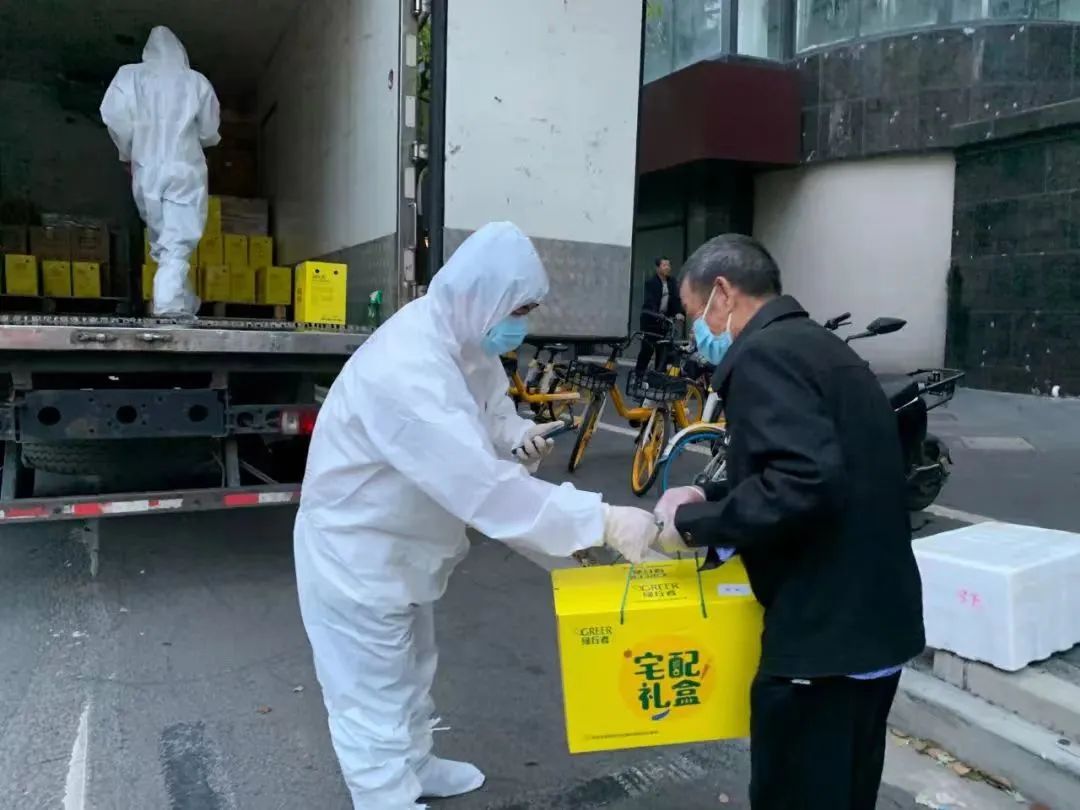 上海基地全体管理人员在刘元军的带领下支援车间生产、外出跟随蔬菜配送。每天一早处理完手头工作,便穿上防护服跟随物流车辆进行配送,在路上继续安排路线、联系客户收货、搬运货物。防护服穿脱不便还闷热,他们不敢多喝水,更没时间吃饭,从凌晨五点开始备货、装车、送货,一直持续到第二天凌晨两三点。每日向市场供应“绿行者”品牌果蔬4万余份,除供应各大商超及线上平台外,在多个小区开展团体配送,确保新鲜果蔬当天端上市民餐桌。