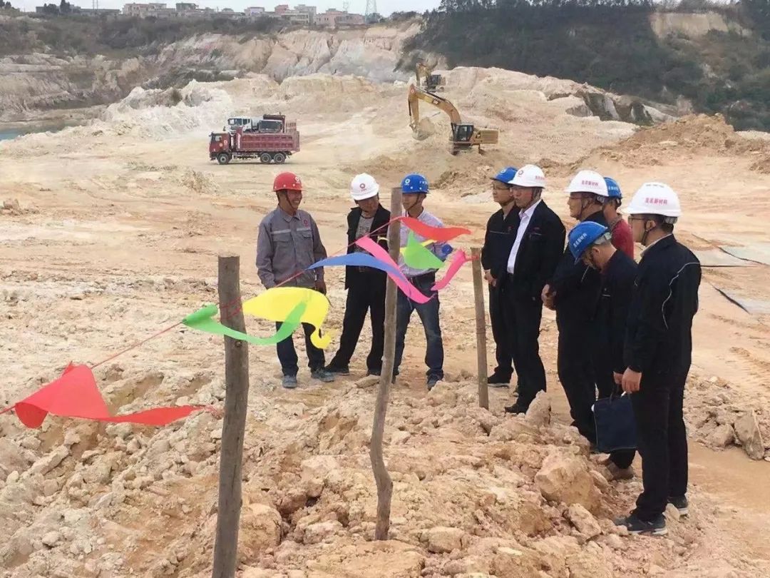 “当前首要的任务是取得矿权证和采矿许可证,这是公司的生存之本。”拿着公司各股东注册的1.5亿元自有资金,他一边开始招聘员工和搭建团队,一边频繁地奔忙于公司、市国土局、市国资委和政府相关部门之间。功夫不负有心人,终于在2018年9月11日竞得茂名山阁高岭土采矿权,为公司项目实施提供了资源保障。2019年4月24日公司取得采矿许可证、正式成为山阁矿区采矿权人,以及完成首采区650亩土地租赁签约后,张伟宏立即与班子成员商量,他提出:“当前公司已进入矿山建设的新阶段,我们要突破常规思维,走出一条属于我们自己的超常规发展之路,要一手抓矿山建设,一手抓生产经营。”说干就干,在他的领导下,公司确立了“边建设边经营、边经营边盈利”的工作思路,矿山首采区基建于2019年6月8日正式开工,东西两侧同时施工,全年共清理表土88万吨、高岭土工程矿38万吨。同时对基建过程中产生的表土、工程矿进行了销售,开创了边建设、边经营、边盈利的“茂名模式”。