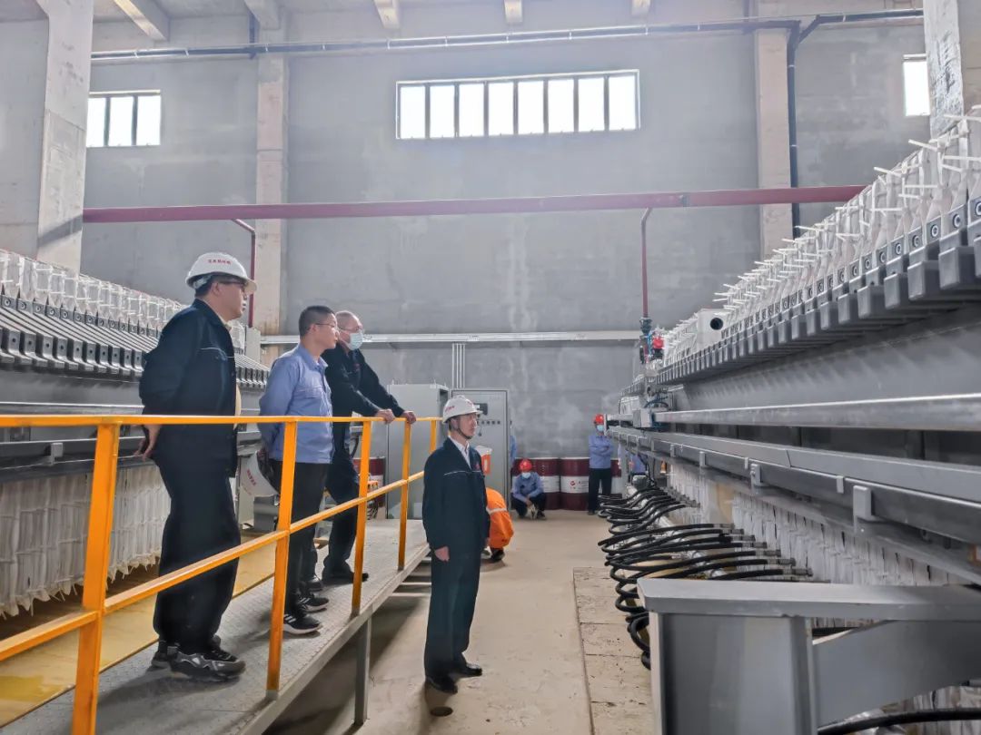 图为分离站-压滤车间(二)小循环联调联试取得成功,张伟宏同志亲临一线指挥情况