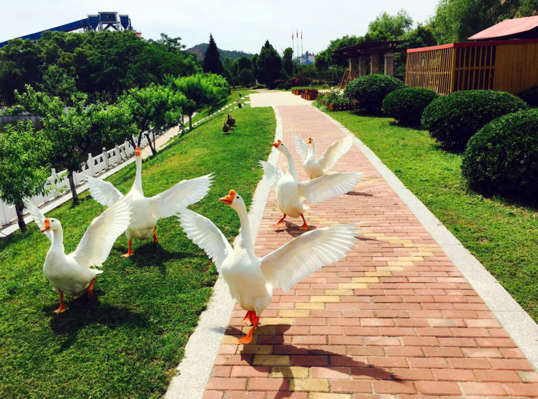 中材安徽长期以来着力打造“绿色工厂”“花园工厂”。以“口袋公园”布局,以“爱心湖”为中心,见缝补绿、移步换景,种植各类果木花卉、绿植草坪,同时在厂区美化方面融入巢湖地方文化特色,提升文化内涵。如今的中材安徽厂区芳草如茵、树木葱郁,孔雀绽放五彩羽衣,天鹅在碧波中游荡。正所谓“花园厂域赛瑶庭,山净水清毓秀灵”。