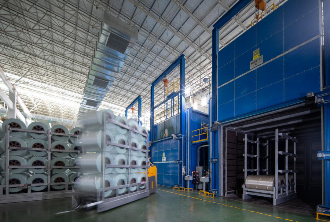“烘干”是玻璃纤维生产线继熔制、成型、拉丝后的生产环节,窑炉的余热被充分利用,经过技术改造后,窑炉的余热经过锅炉转化成100多摄氏度的蒸汽,完全满足了烘箱的温度要求,但如此高的温度,离烘箱三五米,并没有热气扑面的感觉,也就不存在高温作业环境。