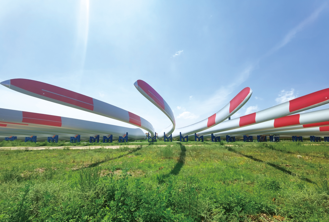 ,已经成为“海上风叶强者”。 01一长再长 国内风电发展初期,风机多装于陆上富风区域。随着富风区域资源减少和风电消纳的制约,市场逐渐饱和,加上低风速和海上风电技术的发展,在低风速区域和海上建风电厂已具备经济效益。 中材叶片与中复连众十几年的成长发展历程,是中国风电产业发展成长的缩影。 20世纪下半叶,世界石油危机之后,风能作为清洁且高效的可再生能源得到迅速发展。 如果将时间回拨到20年前,国内并没有兆瓦级风电叶片的制造先例。所有关键的模具、工装设备以及制造工艺、原材料都来自欧美国家。 20世纪80年代,我国首次引进了三台风力发电机组,开始尝试风力发电机组的开发。1996年开始,随着“乘风工程”、科技支撑计划等一系列项目的实施,国内开始发展风电技术。 也正是在那个时候,北京玻璃钢研究设计院(下称“北玻院”)开始改制成企业。因为在复合材料技术方面有着多年的技术积淀,它们决定进军风电叶片领域。 中材科技股份有限公司党委书记、董事长薛忠民说:“真正用到风电叶片,我们还缺气动设计、结构设计,以及完整的产品设计,咱们要数据库没数据库,要经验没经验,在前几年,主要精力还是在技术上补短板,跟跑。” 2005年,北玻院成立了风电叶片研发项目组,并决定先派5个人去哈尔滨绝缘材料厂共同开发风电叶片。从中关村出发,风电叶片研发项目组5个人各自扛着一台电脑就出发了,一去便是五个月。 叶片堆场 在艰难的条件下,从模具开发到产品研发,一边是中材科技风电叶片研发项目组与哈尔滨绝缘材料厂联合开发国内第一套1.2兆瓦的叶片;另一边是中复连众在风力机叶片生产线及技术上的发力。 2005年,中复连众抓住国家大力鼓励和扶持国内风电制造业发展的契机,从德国引进1.5兆瓦风力机叶片生产线及技术,成为国内首家从事兆瓦级叶片制造的企业。 至此,大型叶片在国内的发展经历了四个阶段,分别是制造技术引进、制造技术研发、设计技术起步和全面自主设计。 因风资源特性的差异,以及叶片设计、制造理念不同,从欧美国家购买的专利技术到期后还有很多问题需要解决。这些技术不是照搬照抄就能解决的,需要企业不断探索新知,拥有自己的核心技术。 风电叶片主要由增强材料、夹芯材料、基体材料、表面涂料及不同部分之间的结构胶组成。叶片80%以上的成本来自原材料,而60%的原材料成本来自增强材料与基体树脂。 目前,市面上的增强材料主要由玻璃纤维组成。随着叶片越来越长,对材料性能的要求也在不断提高。在业内人士看来,传统的玻璃纤维材料急需性能更强的材料替代,而碳纤维是目前最佳的材料之一。碳纤维的主要特征是质量轻、强度高、模量高、耐腐蚀、抗疲劳等,是一种常常被应用于航空航天、基础设施、工业领域的碳主链结构的高性能纤维材料。 采用碳纤维的叶片不仅有效减轻了叶片质量,还提高了叶片刚度和强度。 据了解,主梁一般会占风电叶片整体重量的三分之一,是支撑整支叶片的关键构件。使用碳纤维主梁,能够在最大程度控制成本的前提下,保证叶片强度和刚度,降低整体重量。 早在2014年,中复连众就下线了应用碳纤维主梁的75米叶片,采用真空导入工艺。之后,该企业又采用碳纤维预浸料制造碳纤维主梁。 目前,中复连众自主开发的76米碳纤维预浸料主梁叶片已生产220套;由某整机商提供设计的90米碳纤维预浸料主梁叶片,共生产44套。“中复连众正在研发其他碳纤维利用技术,为整机商制造超百米级的碳纤维叶片。”刘卫生介绍。 在对引进技术消化吸收后,中复连众形成了涵盖叶片设计、材料测试评价、关键工装设备开发、叶片制造及全尺寸结构试验等完善的技术创新体系。 123米叶片下线 中复连众不断攻克更高强度的叶根连接技术,实现了将特定直径叶根承载能力提升20%的重大突破。中复连众现有9个系列140余个型号的产品,量产的叶片最大长度已经超过120米。 02国产化替代 2006年1月1日,《可再生能源法》实施。在一系列国家政策支持下,中国风电市场规模迅速扩大,装机容量快速增长,同时也带动了风电叶片行业的迅速发展。 正是在这个时期,中材科技风电叶片股份有限公司在北玻院的基础上组建成立。 风电叶片,从研发到批量生产,是一个艰难的过程。 中材科技锡林公司风电项目 中材叶片技术总监鲁晓锋说:“叶片看起来简单,但实际上工艺很复杂,设计和制作都很难。结构上,叶片实际上是个悬臂梁,一端固定、一端自由,看着是刚性的,实际上风来了以后,它得往一边绕一下,整个是比较复杂的结构设计,叶片越大越容易弯曲,所以需要抗弯,在大的同时,又要重量轻。” 临近2007年春节,原本是高兴的日子,中材叶片风电项目组团队成员之间恨不得见了面就要打架,因为有争论、有分歧。 “当时真的陷入了迷茫之中。” 薛忠民说,“有那么一两个月陷入了停顿状态,出一支叶片的主梁,有皱褶,出一支报废一支。主梁发挥主承力作用,所以它有点皱褶,将来有可能就是破坏点。” 报废一个梁就是一二十万,相当于报废了一辆小轿车。顶着高压经过近半年的痛苦磨炼,中材叶片第一支可批量生产的40.25米叶片终于试制成功,这是当年我国自主研发和制造的国内最长的风电叶片。中材叶片创新性地把液体成型技术应用于风电叶片的生产制造,彻底改变了叶片行业