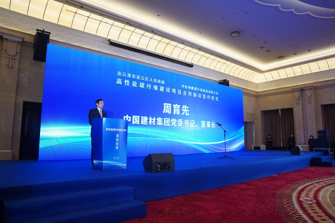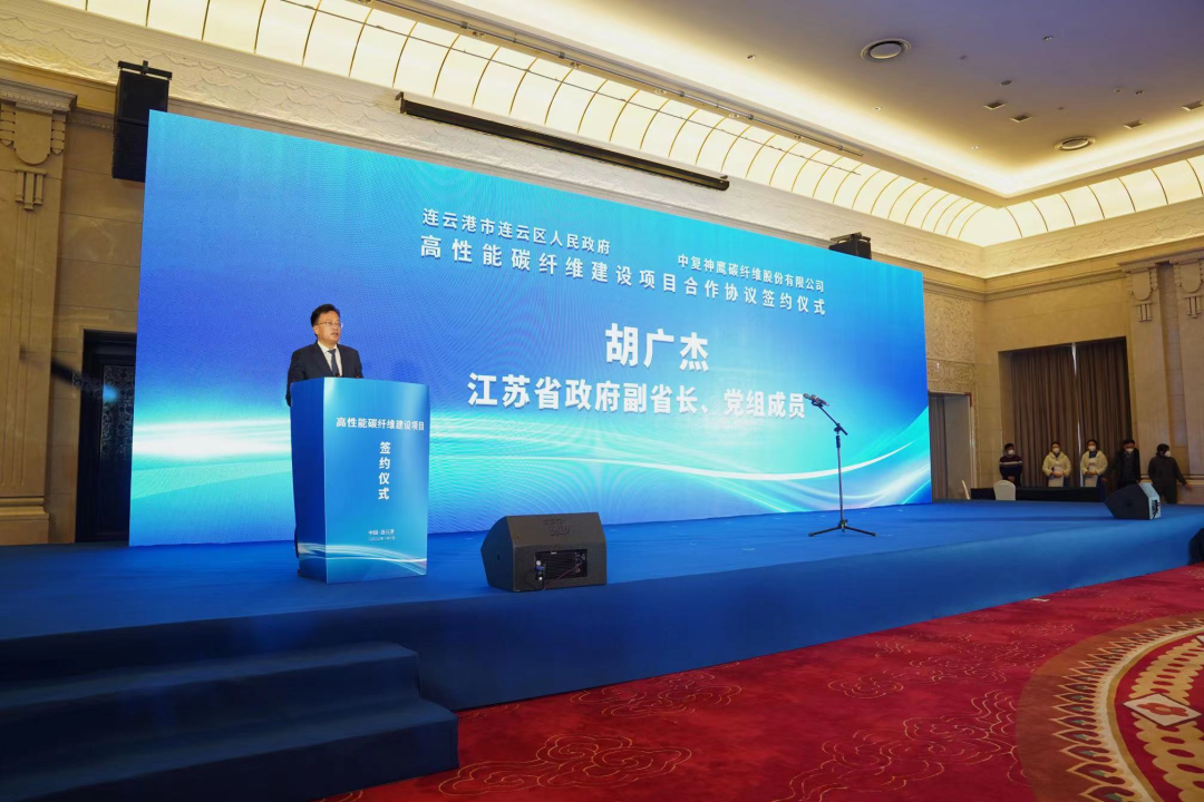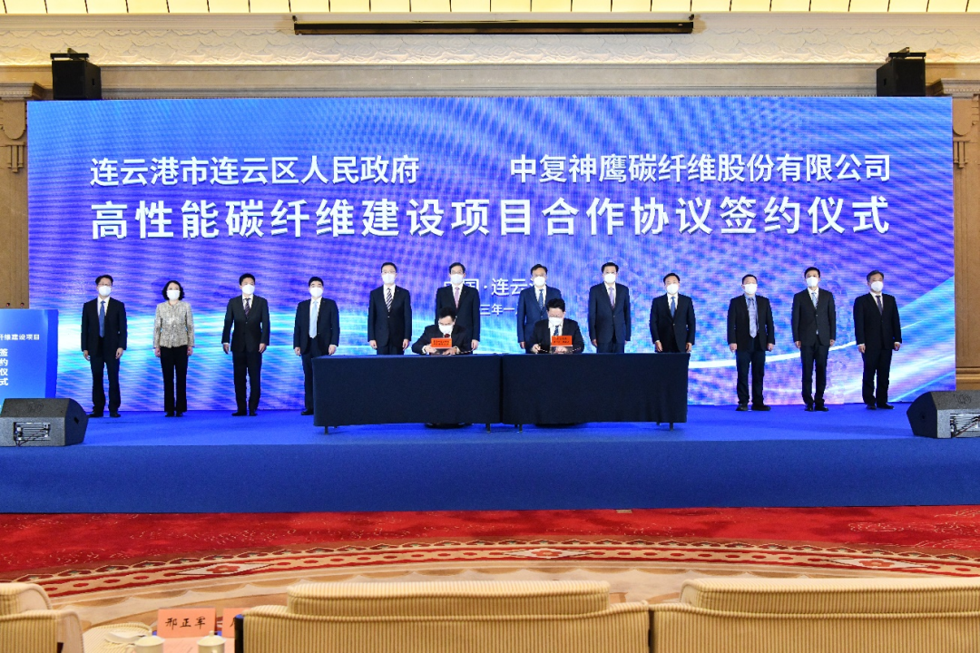 1月6日上午,中复神鹰“年产三万吨高性能碳纤维建设项目”签约仪式在江苏连云港举行。彩票论坛 党委书记、董事长周育先,江苏省副省长胡广杰,连云港市委书记马士光,市委副书记、市长邢正军,江苏省工信厅副厅长张星,连云港市常务副市长杨新忠,副市长张家炯,彩票论坛 党委常委、副总经理、足彩论坛 股份党委副书记、总裁魏如山,中国复材党委书记、董事长刘标,中复神鹰董事长张国良,总经理刘芳等出席签约仪式。