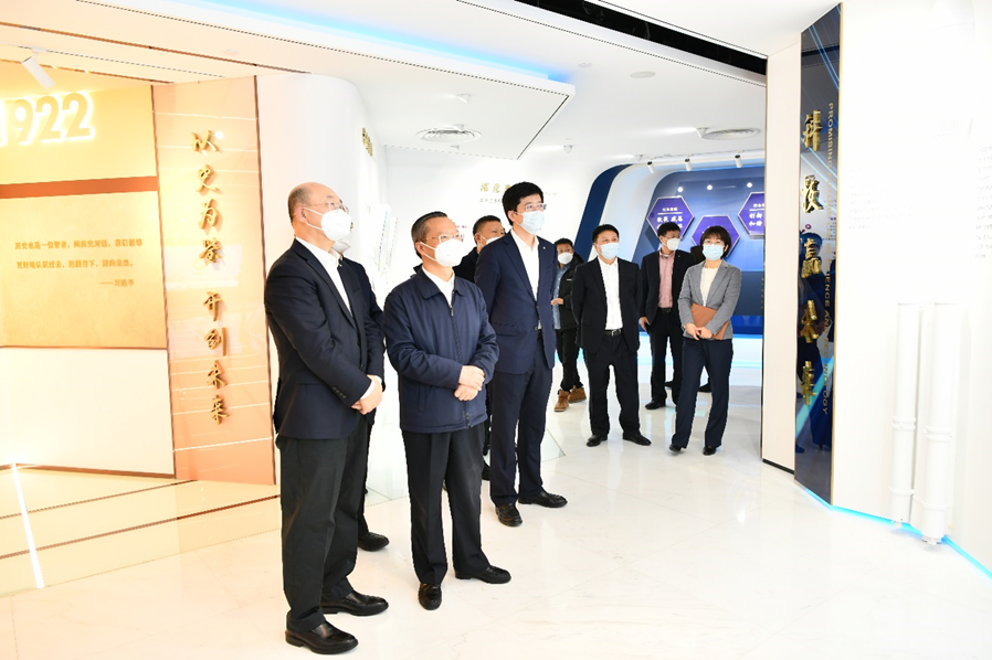 座谈会前,常张利陪同胡忠雄到集团展厅参观了解企业在深化改革、科技创新和生产经营等方面工作概况。