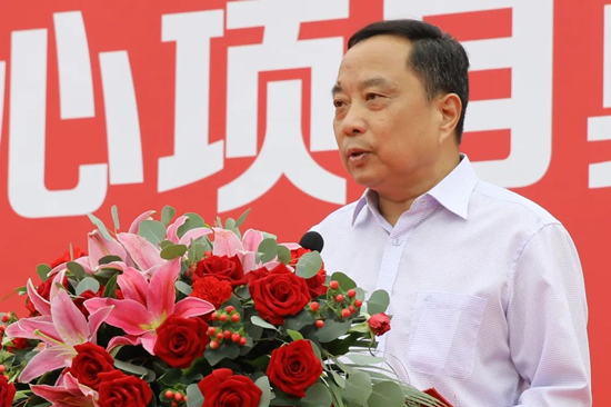 北新集团副总经理于险峰在欢迎辞中指出,在北新厂庆这个值得纪念的日子,我们满怀期待铲起北新国际木业华北运营中心项目的“第一铲土”。