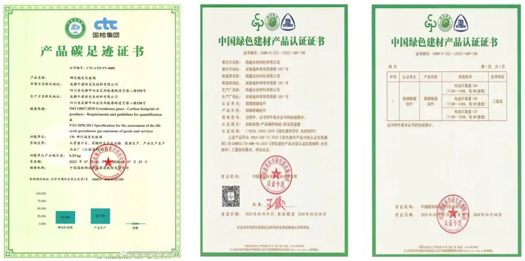 超薄光伏玻璃(1.5㎜-2㎜)不仅具有美学优势,而且重量轻,便于安装与维护;发电玻璃具有弱光性能好、光电转换效率高、成本低、低碳、美观、安全、可定制的突出特点和生命周期结束后可回收等的优势而备受关注,是实现节能减排、领跑建筑风尚、掀起新型能源革命的不二选择。该材料被广泛应用于博鳌亚洲论坛会议中心、成都大运会、世界科幻大会等多项国家级盛会和上海顶尖科学家大楼、江苏天格地板有限公司BIPV光电幕墙等的国内地标性建筑。 合肥新能源“年产5万吨二氧化碳捕集提纯绿色减排示范项目”、凯盛光伏铜铟镓硒发电玻璃成功入选“安徽省十大低碳应用场景”。 凯盛光伏取得最高级别(三星级)“中国绿色建材产品认证证书”。 漳州新能源荣获福建省“绿色工厂”。 成都彩票论坛