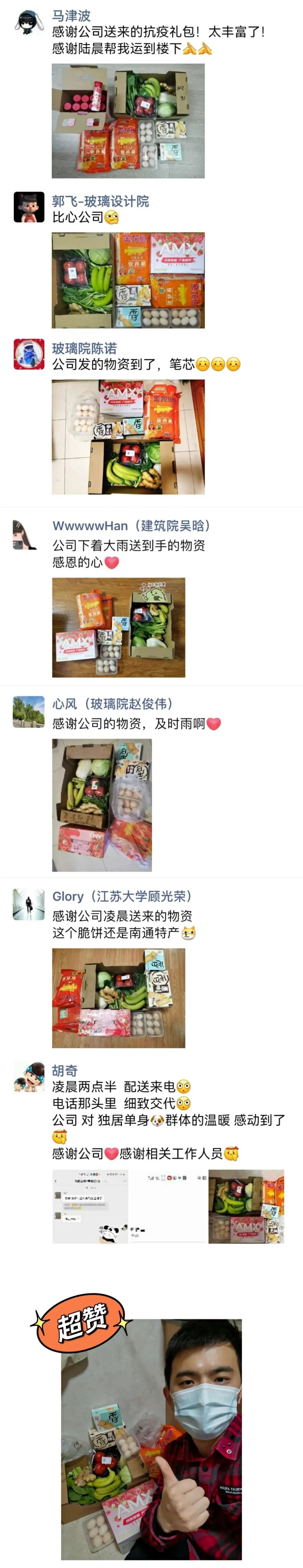 工程党委第一时间响应普陀区委组织部号召,开展爱心物资捐赠行动,为普陀区孤寡老人以及生活困难家庭无偿捐赠1000份肉蛋蔬菜爱心礼包。以人为本,关爱员工,保障在沪困难员工物资供应。公司竭尽全力保障封控区员工生活物资供应,多部门协调配合为公司在沪困难员工配送爱心物资。收到公司爱心大礼包的员工纷纷发朋友圈晒图,表达收到物资的喜悦和对公司关怀的感激。