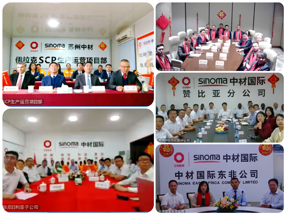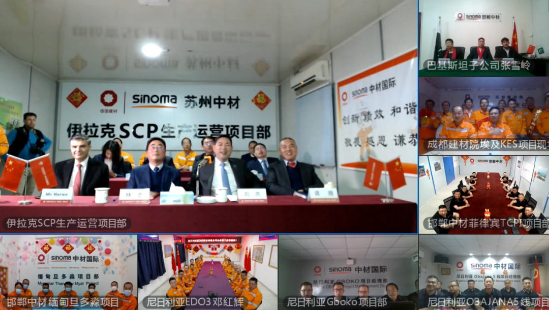 股份党委副书记,中材国际党委书记、董事长刘燕,中材国际党委副书记、总裁印志松,中材国际董事、副总裁朱兵,中材国际党委副书记蒋中文,中材国际副总裁、财务总监汪源分别在伊拉克、尼日利亚、乌兹别克斯坦、赞比亚、坦桑尼亚等5个属地化公司参与活动。 刘燕发表新春讲话,他代表公司领导班子成员向全体海外干部职工致以崇高的敬意和衷心的感谢。他表示,公司的发展离不开每一位员工的奉献,中材国际始终心系海外一线,把保障海外员工身心健康放在首位,希望大家都能过上一个平安祥和的春节。他强调,新的一年全体中材国际海外人将继续乘风破浪、勇毅前行,谱写海外发展新篇章,在集团国际化发展新征程上,展现中材国际新担当,新作为! 中材国际境外5位属地化公司负责人分别从伊拉克、尼日利亚、乌兹别克斯坦、赞比亚、坦桑尼亚为大家送上新春祝福。 中材国际及所属单位9位在境外慰问的领导分别从乌兹别克斯坦、坦桑尼亚、尼日利亚、伊拉克、沙特、埃及、阿尔及利亚、乌兹别克斯坦、赞比亚为大家送上新春祝福。 活动最后,大家一同观看海外项目录制的祝福视频。现场氛围喜庆热闹、欢乐祥和,虽然隔着屏幕,但大家的心紧密相连,喜悦和幸福溢于言表。伴随着新年的钟声,境外大拜年活动圆满结束。在全球形势依然充满风浪的境况下,此次活动的举办尤为可贵,海外一线员工深受鼓舞、倍感振奋。大家纷纷表示,新春祝福温暖人心,新春寄语催人奋进,新的一年,大家将牢记嘱托,奋力拼搏,乘势而上,共同开创更加美好的未来。