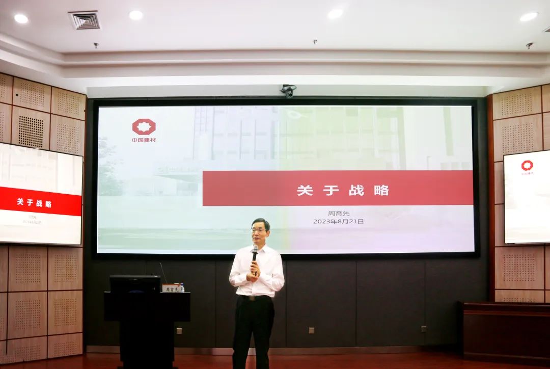 周育先首先向全体学员介绍了“两材重组”以来,集团快速稳健成长的整体情况。随后,从对战略的理解、集团的战略、战略的思考三个层面展开授课,并对下一步工作提出期望和要求。他通过集团发展历程中的典型案例,围绕“产业赛道的选择、成长路径的选择、产业思维的运用”三个维度,深刻阐述了对战略的理解,并强调企业要时刻保持战略的灵活性和适应性。围绕习近平总书记对国资央企工作的重大部署、重要批示,他详细解读了集团的企业使命、战略定位、发展目标、管理机制,说明了集团“十四五”规划实施进展情况及对子企业战略管理“三步走”的思路。他强调,集团战略服从服务于国家战略,集团战略与企业战略相辅相成。集团层面,要强化政治担当,坚持央企定位,以“国之大材”助力建设材料强国;要强化改革赋能,更好发挥科技创新、产业控制、安全支撑作用;要强化投资逻辑,优化布局结构,更好发挥产业投资平台的作用。企业层面,要强化战略定力、战略管理、战略落地,坚决落实集团战略,找准定位、紧盯目标、执行有力,提高常态化应对不确定性的承受力和驾驭力。