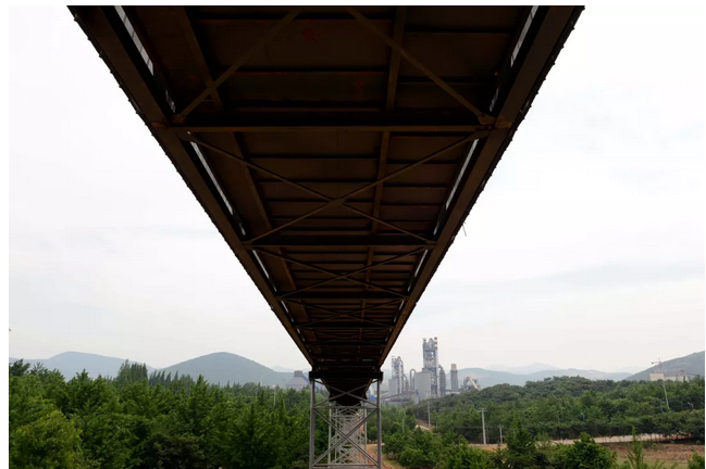 这条输送带长22公里,每年能运1050万吨熟料,每天***运输量可达4.5万吨。有了这条运输带,301省道煤山至小浦这段路,每天减少运输车辆往返约2400车次,全年可节约燃油2026吨,减少尾气排放14278吨。这将大大缓解公路运输压力,还能减少扬尘、噪音、尾气对环境的影响。这条“空中运输走廊”全封闭、全架空、耐高温等优点,现已被交通运输部列入绿色示范项目。