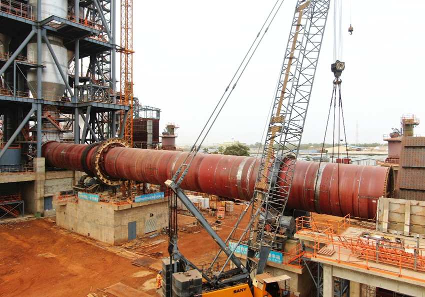 4月8日,中材建设尼日利亚SOKOTO项目日产6000吨熟料水泥生产线经过四天的连续吊装作业,回转窑顺利吊装合拢,完成项目里程碑节点,为项目的顺利推进奠定了坚实基础。三线回转窑筒体为现场卷制,项目部精心组织协调,用时2.5个月完成回转窑筒体卷制工作,较计划制作周期提前半个月完成。