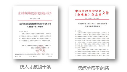 秉持“院士、专家、工程师、工匠” 四层级人才培养思路 召开人才工作会议 发布“人才激励十条” 强化科技人才队伍建设 持续健全中长期激励体系 改革成果荣获 国有企业深化改革实践优秀案例一等奖 全国足彩文化优秀成果 全国足彩文化建设最佳实践企业 全国企业管理现代化创新成果二等奖 行业、省级企业管理现代化创新成果一等奖等荣誉 南京玻纤院人才工作会议 01. 重视科技人才职业通道建设 南京玻纤院“专家”选聘评审会 南京玻纤院“两总”及后备人才培训班 02. 推动产业工人队伍建设改革 打造“双师型”人才队伍 成立江苏玻纤产业工匠学院 劳模(工匠)创新工作室联盟 主办全省玻纤及制品检验工 职业技能竞赛 培养院技能人才529名 “双师型”人才26名 获全国技术能手2人 全国建材工匠1人 全国纺织大工匠1人 江苏省五一劳动奖章4人 其他荣誉奖项近20人 阶段成果 在《工人日报》《新华日报》 《学习强国》媒体报道 南京玻纤院“培—鉴—竞—用”技能型人才管理体系 共建成立江苏玻纤产业工匠学院 “江苏工匠”岗位练兵及玻纤及制品检验工职业技能竞赛 03. 优化科技人才薪酬激励机制 重视科技人才激励体系建设 强化正向激励 激发内生活力 推动落实 重大项目薪酬总额单列激励 建立实施 科技类专项奖励 形成3大类、12项激励措施 为内容的多样化特色激励体系 南京玻纤院差异化薪酬管理体系 南京玻纤院薪酬总额管控动态管理机制 南京玻纤院试点重大项目薪酬总额单列 释放创新活力 发展再创新高 “十四五”以来 南京玻纤院通过国企改革行动和创新发展举措 企业呈现新气象、迸发新活力 综合实力和经营效益 不断迈上新台阶 在国资委2022年度 科改企业考核中获评优秀 改革再启程 踔厉奋发向前 快马加鞭未下鞍 撸起袖子加油干 南京玻纤院将以习近平新时代 中国特色社会主义思想为指导 深入贯彻落实党的二十大精神 深入开展国企改革深化提升行动 以科改行动为契机 围绕“四个面向” 突出战略重点 以改革促发展,以创新求实效 切实强化核心竞争力和核心功能建设 不断塑造发展新动能新优势 推动高质量发展!