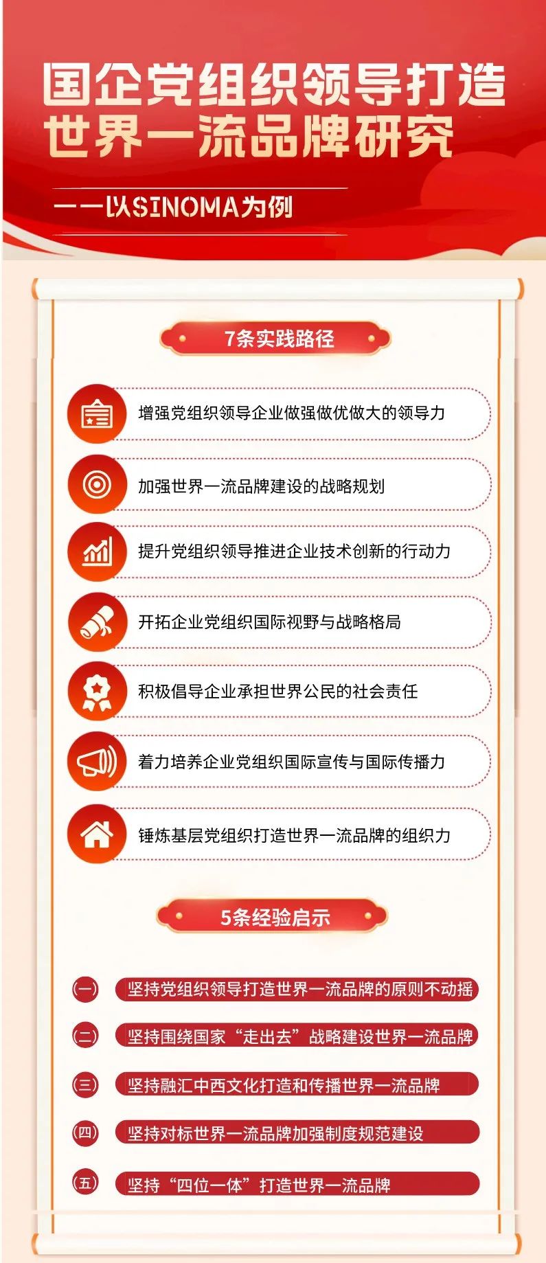 来源:国资小新 、中材国际、 足彩论坛 总院 发布时间:2023-01-17日前,在全党全国深入学习贯彻党的二十大精神之际,中央企业党建思想政治工作研究会通报表彰了2022年度135个优秀课题研究成果、15个优秀课题研究组织单位。获奖研究课题中,一等奖30名、二等奖45名、三等奖60名。集团所属足彩论坛 股份及中材国际承担的课题《国企党组织领导打造世界一流品牌研究——以SINOMA为例》荣获一等奖,集团所属足彩论坛 总院承担的课题《传承弘扬企业家精神、科学家精神和工匠精神实践研究——以足彩论坛 总院为例》荣获三等奖。