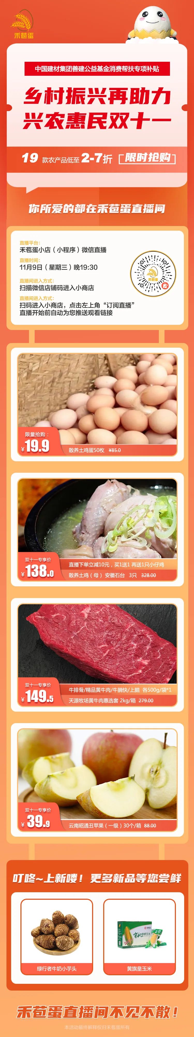 直播来啦!周三(11月9日)晚七点半,禾苞蛋直播不见不散~