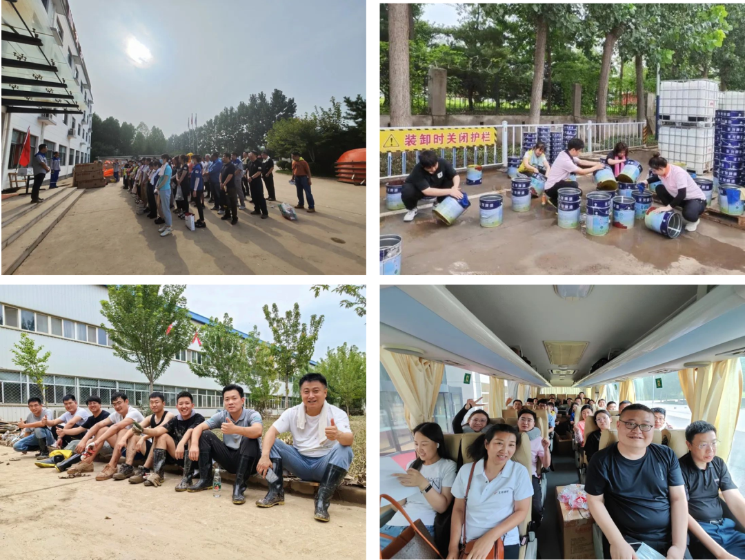 北新建材各基层党组织和党员积极响应驰援涿州分公司灾后重建工作。公司工会第一时间组织采购应急物资和药品。从8月7日到8月11日共组织537人次参与涿州分公司现场清理、抢救物资等工作。天津北新、朔州北新、平邑北新、北新建材滨州分公司、北新建材枣庄分公司等火速驰援人员、设备和物资。