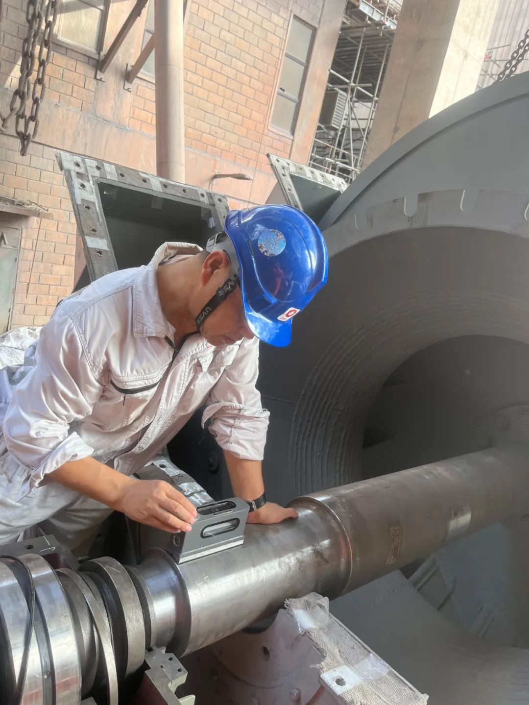 项目建设一步一个脚印,每一个环节的验收都必须严格把关。虽有万般想回家的心,高永红还是选择留守现场,此刻的他正在进行煤磨引风机的找正验收,为下一步的工作打下坚实基础。