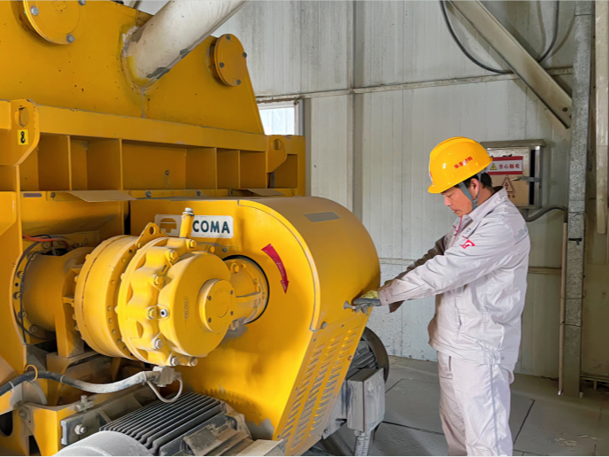 巡检工检查窑主传减速机的润滑情况,确保设备运行。