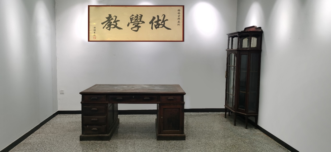 这是陈调甫先生使用过的办公桌、资料柜以及提出的灯塔厂训“做、学、教”牌匾。陈调甫先生曾在这张办公桌上夜以继日的工作,投身涂料行业,助推中国涂料工业发展。