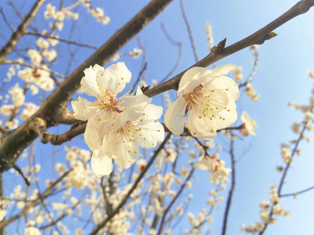 碧湖倒映着的绿波泛起阵阵涟漪,秀丽的美人梅撑开如瀑的黛丽花伞,接住阳光下的碎玉浮光,洒下醉人的清香。晨光勾勒下的玉兰花,擎起如玉般的细颈瓶,接纳晶莹的露珠。樱花如粉色的云霭,梅花以清瘦的枝干托起嫣红,油菜花像打翻的日光在田野间流淌……风过时,花瓣与花香都成了有形的诗行——有的盘旋着坠入溪水,有的攀着蝴蝶的翅膀飞越白墙,还有的悄悄落在行人经过的道路上,成为春天最生动的簪花。