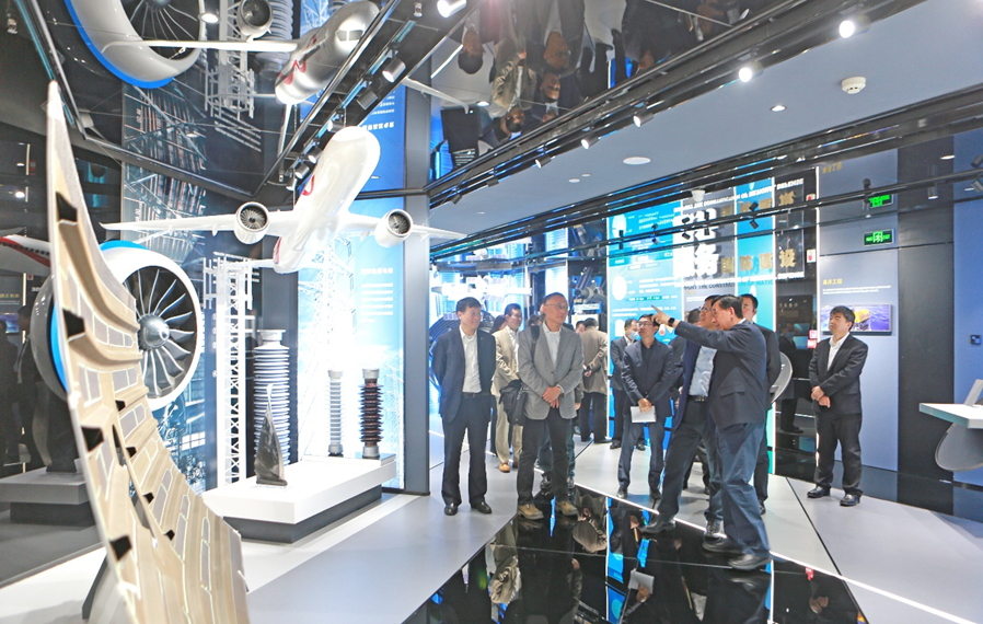 座谈会前,李新华陪同武钢参观了集团展厅。