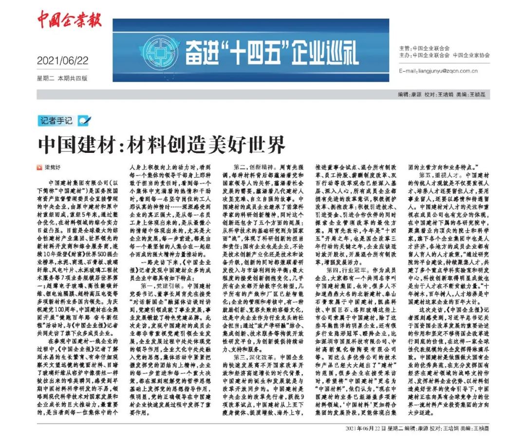 《中国企业报》“走进彩票论坛 ” ② | 足彩论坛 :材料创造美好世界