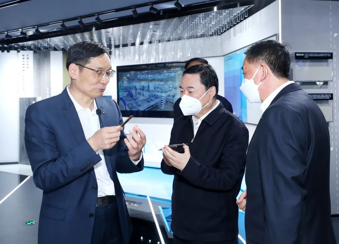 5月17日,国资委党委书记、主任郝鹏到彩票论坛 调研,周育先介绍新材料“低介电玻纤布”电子产品