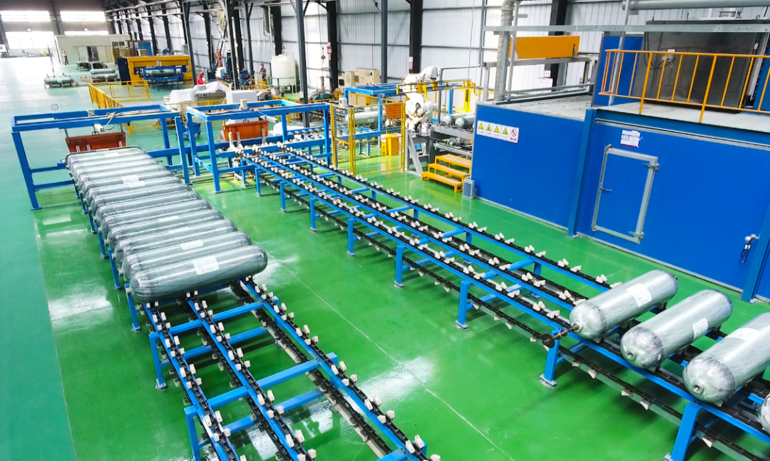 装备集团并打造高端装备智造园区,自主创新建立新材料产业高端装备体系,大力提升装备自给率,深度参与集团非金属材料现代产业链链长建设,助力新材料创新成果在产业端顺利转化成现实生产力。 储氢气瓶生产线 创新后端,实现从“被替代”到“被依赖”的突破。坚持需求导向,敏锐捕捉市场需求,健全后端到前端的反馈机制,由生产型企业提出滚动式、迭代式的攻关任务,发挥好企业“出题人”作用。系统性推进创新成果产业化,提高创新前瞻性,同步开展现有产品迭代升级、替代产品预判研究。聚焦新材料产业发展趋势和战略性新兴产业、未来产业发展前景,提前布局储氢气瓶、柔性玻璃、发电玻璃等新能源产业应用材料的研发和生产。加大前沿领域的新材料产业投资力度,不断丰富集团战略性新兴产业产品库,为加快形成新质生产力、实现高质量发展提供坚实支撑,展现国企担当。