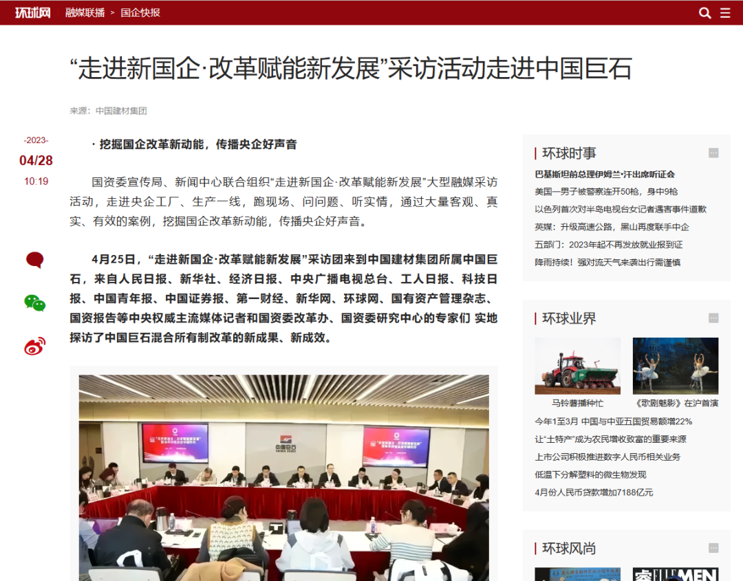 “走进新国企·改革赋能新发展”采访活动走进中国巨石