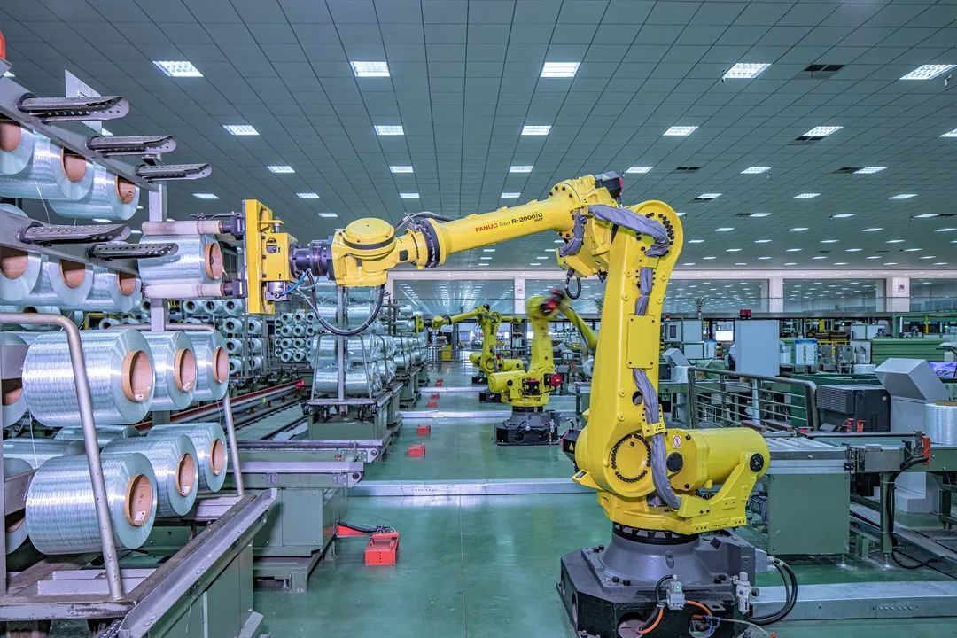 置身“未来工厂”,基本看不到人,却有超1000台工业机器人井然有序地穿梭在车间内;数控屏幕对窑炉实施精准控制,每天要处理上亿条指令;智能机械臂在半空挥舞,自动分配机器人将烘干的原丝筒自动送到包装线,一卷卷玻纤成品在无人立体智能仓库内“自由”升降……这些充满科技感的场景,展现了公司智能制造的硬核实力。它集成了精准投料控制、低耗池窑设计、实时工艺监视、高效拉丝成型、成套输送装备、全自动高架库等先进生产技术和工艺。其中高熔化率超大型窑炉熔化率达到世界最高水平,每天生产的玻纤纱能绕地球238圈,工厂自动化率超98.5%,大大提升人均生产效率,远超行业平均水平。